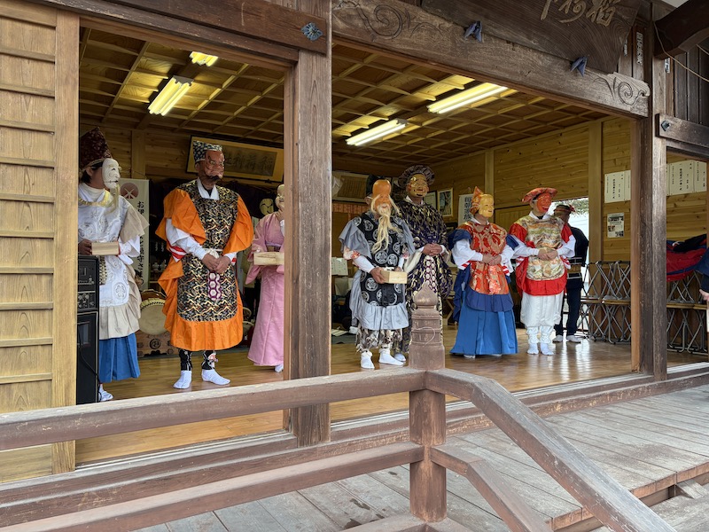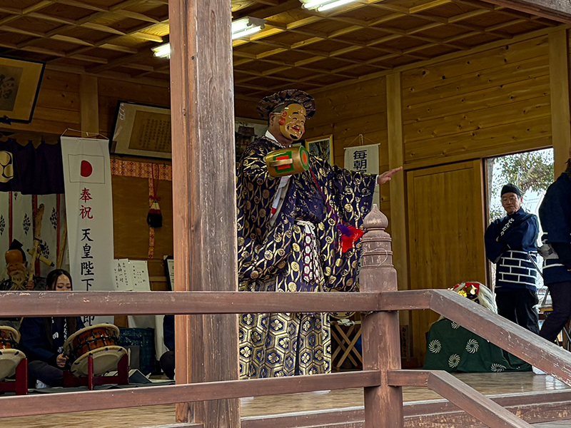 神事終了後には、「とんだやばやし」による舞と囃子が奉納されました。後半には雨も上がり、囃子の音が境内に響き渡りました。
